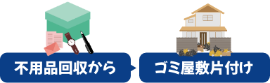 - 不用品の数にかかわらず、どのようなことでもご相談ください。部屋まるごとの片付けなど対応しております。