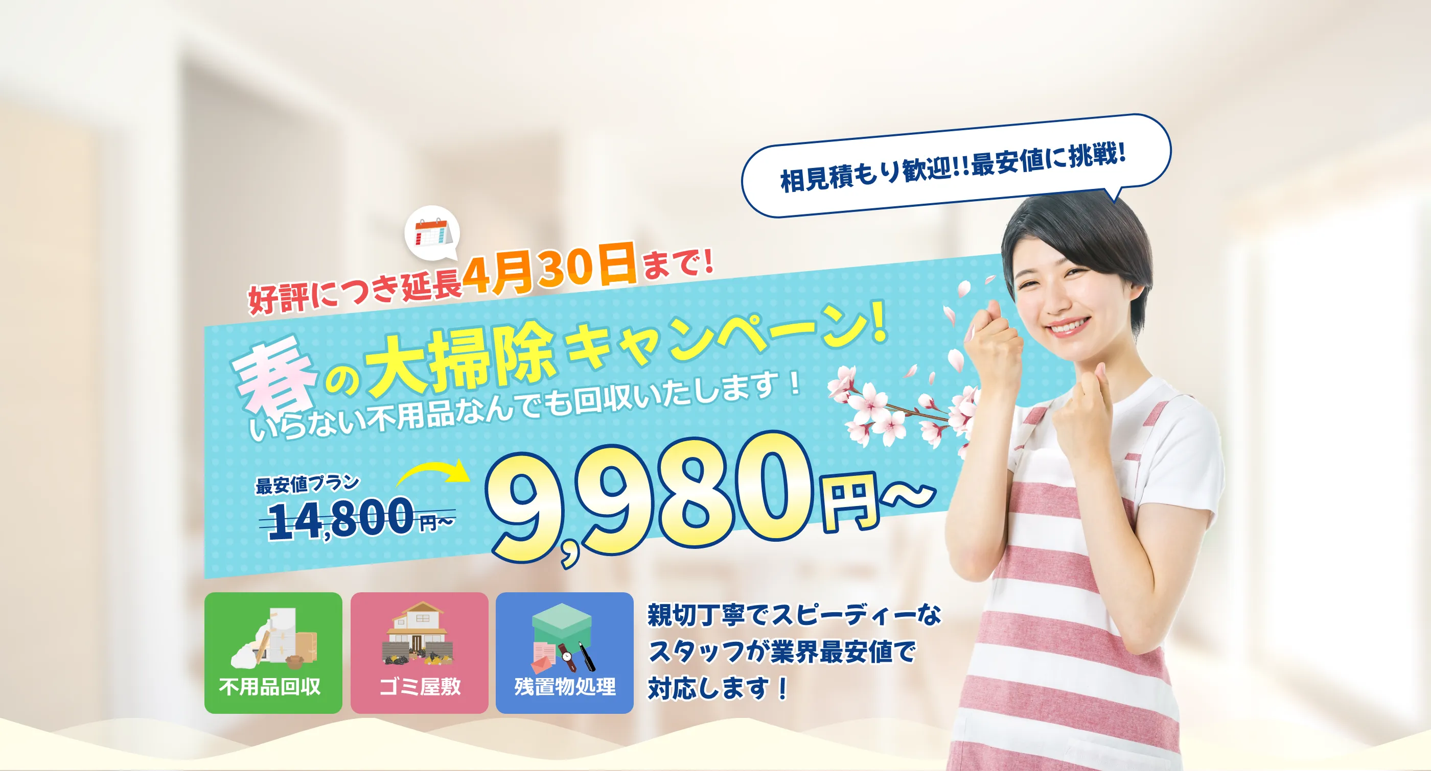 業界最安値を目指してお見積りをご提示させていただいております。ゴミ屋敷の片付けに思ったよりお金がかかり、お客様の負担にならないよう努めております。当社のお見積りが他社よりも高いお見積りであれば一度ご相談ください。